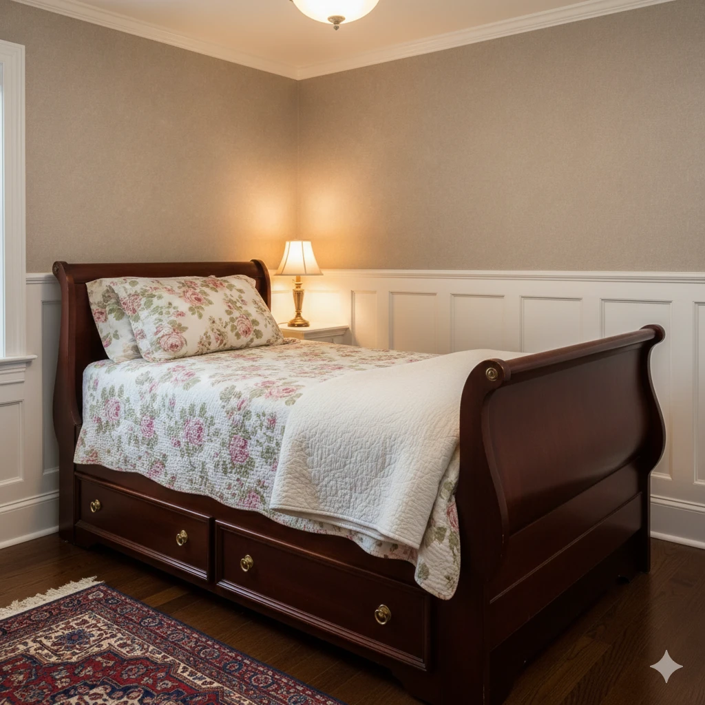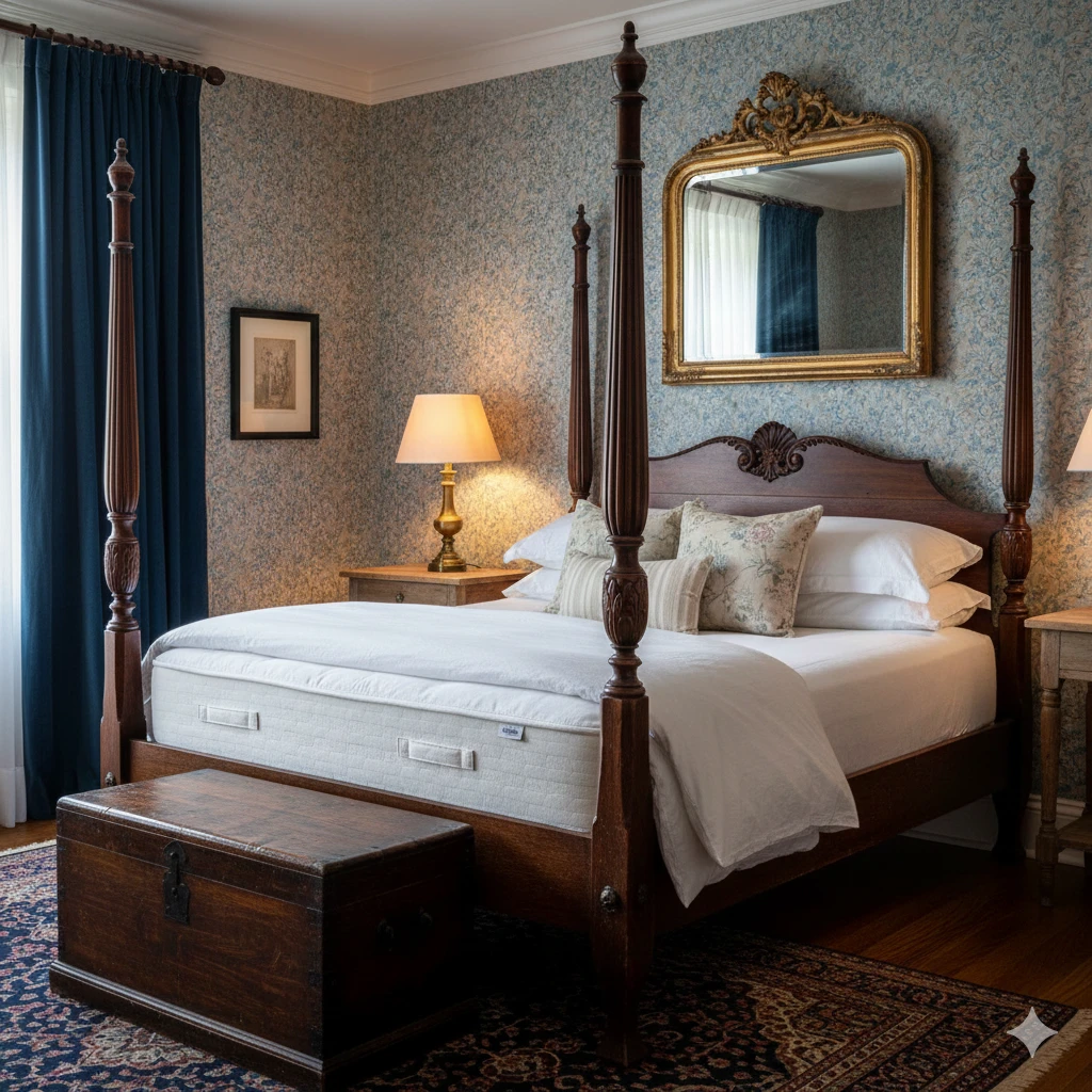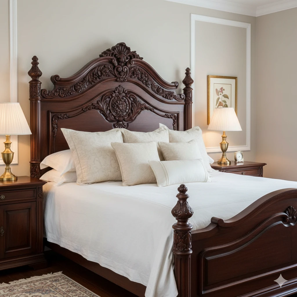 In small rooms, beds for small rooms are key. Opt for sleigh beds or four-posters in compact sizes. These save space while keeping the classic vibe. FYI, antique replicas fit perfectly without overwhelming.