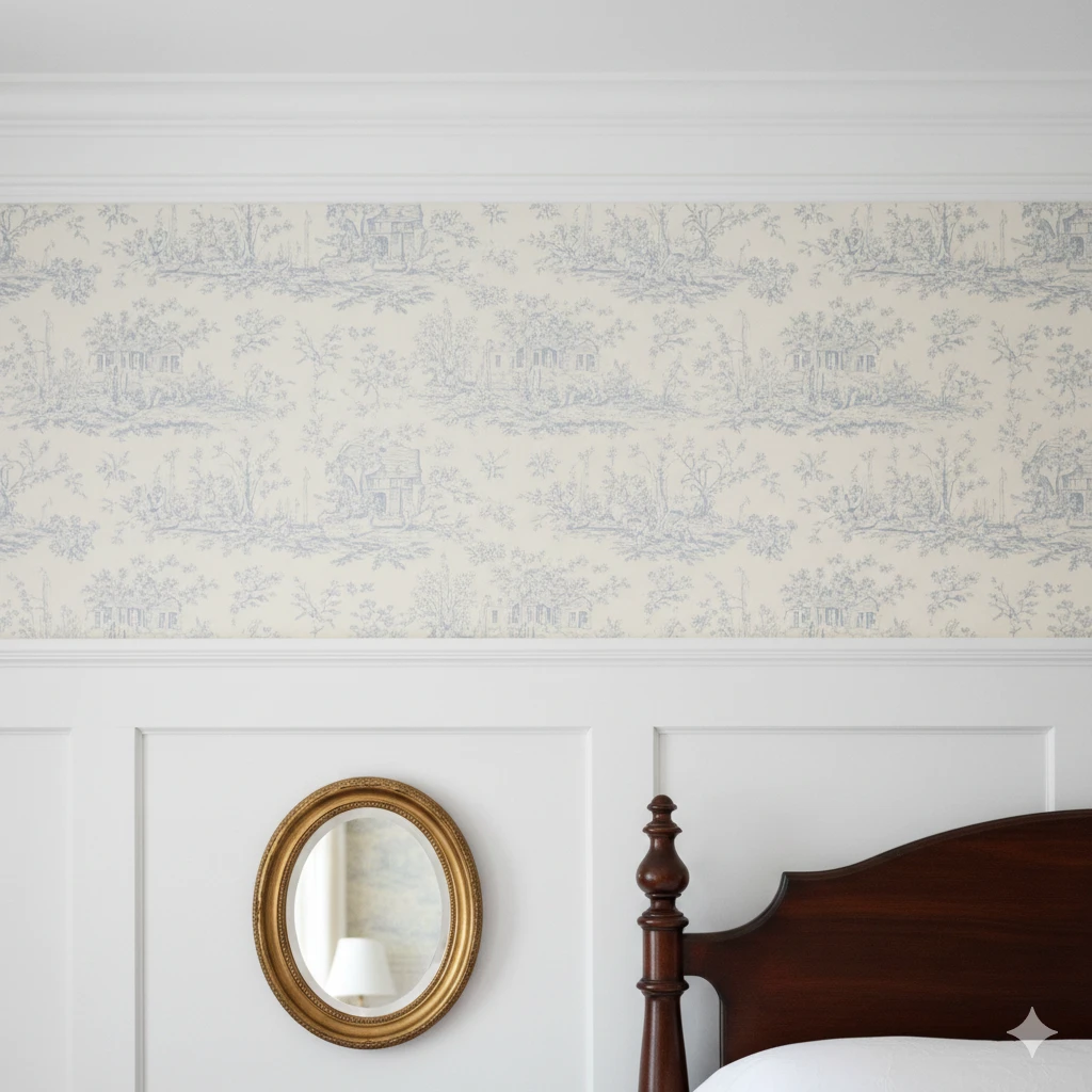 Walls aren’t just backgrounds in traditional bedrooms. Wallpaper with subtle patterns like stripes or toile adds personality.