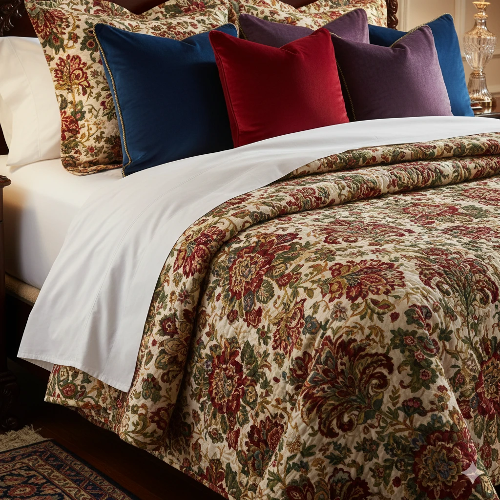Choose cotton or linen sheets for breathability. Top with throw pillows in velvet. Mix sizes for visual interest.